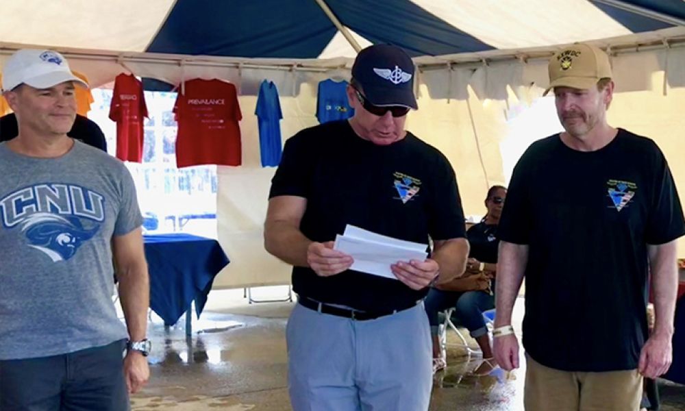 An Airshow Surprise! John Owens, CEO of Prevailance, Inc, alongside the Commanding Officer of NEXWDC, CAPT Cepek, surprised Prevailance employee John Abbott with a spot bonus at the recent NAS Oceana Airshow. John Abbott consistently delivers superior communications support for NEXWDC. He is personally relied upon to perform communications planning, coordinate communication requirements and deliver communication products in support of multiple exercises. Furthermore, he personally has contributed numerous hours providing expert troubleshooting support to various units in the field resulting in the successful resolution of communication failures and the establishment of command and control systems.
